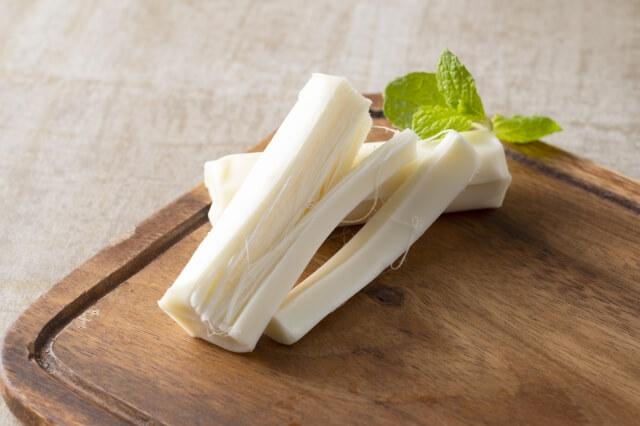 剥いたチーズを束ねるように持ち、食べる!!